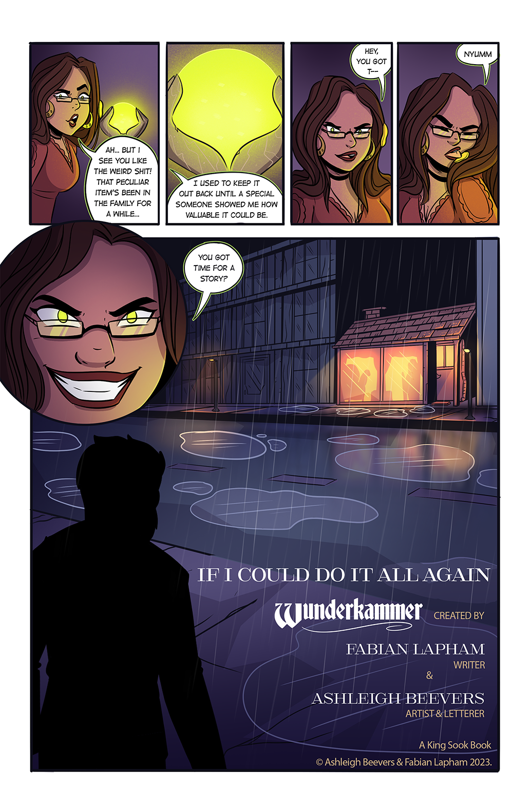 And I’m always working on stuff with Ashleigh Beevers-Lapham, who also designed this very website. She is both an amazing artist and an amazing wife, but she has only monetised the first thing. Our next comic is a direct follow up to our first one, “Wunderkammer”, a horror-comedy anthology that’s hosted by a sassy witch who is trying to sell cursed objects.